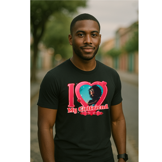 Camiseta Eu amo meu/minha Namorado(a) - foto e escrita personalizada